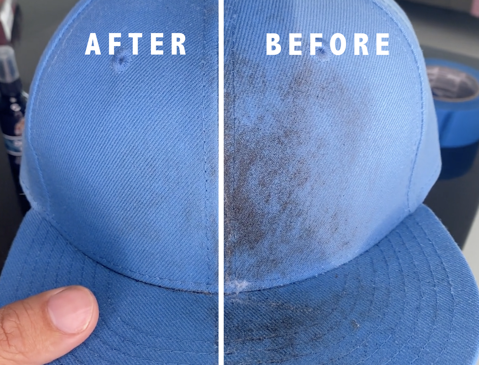 BEFORE: Dust, stains, and dull fabric make your favorite hat look worn out and lifeless.